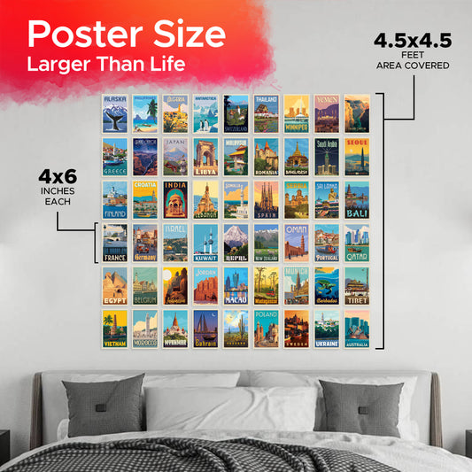 Vintage Retro Wall Collage Kit Pack Of 54 Posters Glue Dots Included