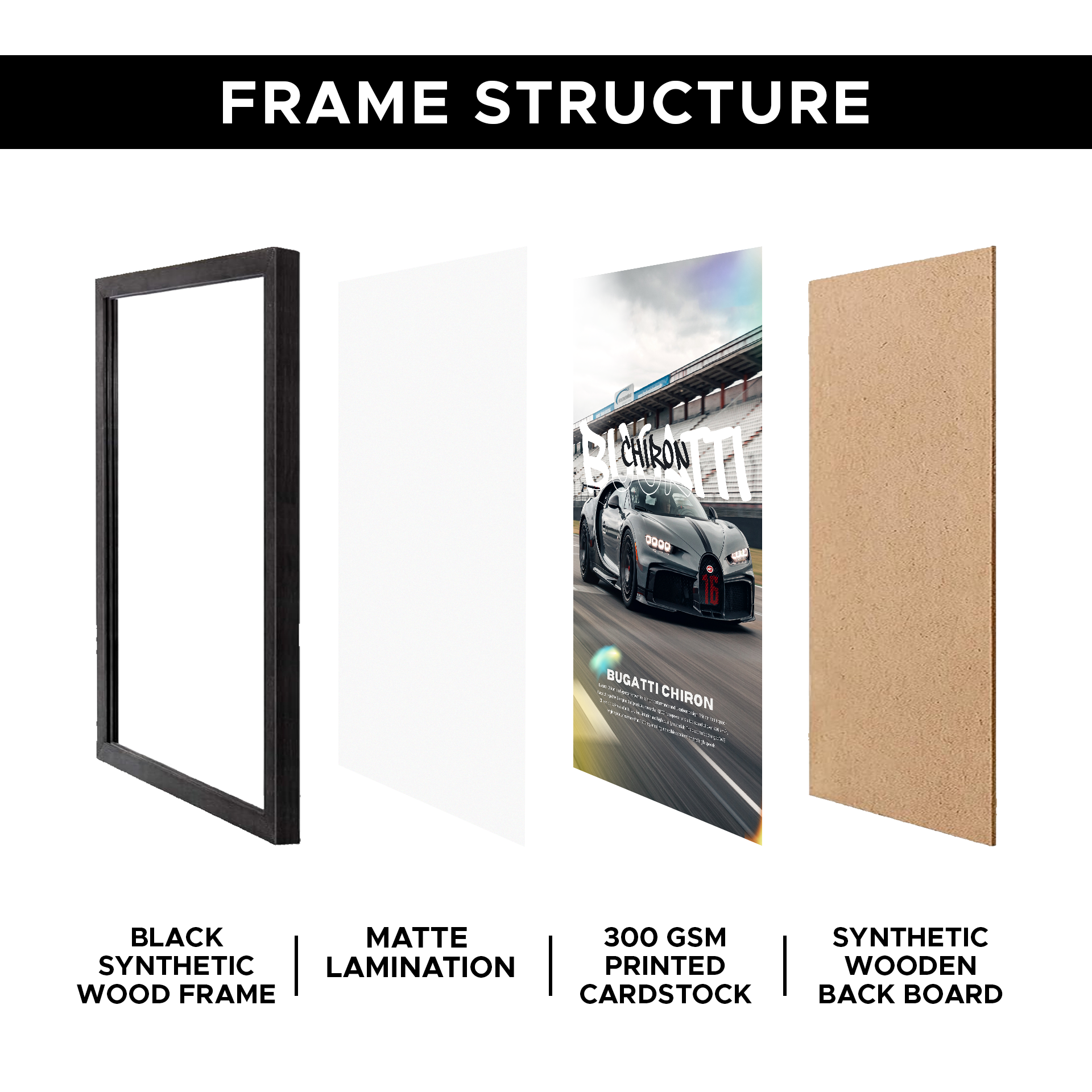 Bugatti Chiron A4 Framed Poster