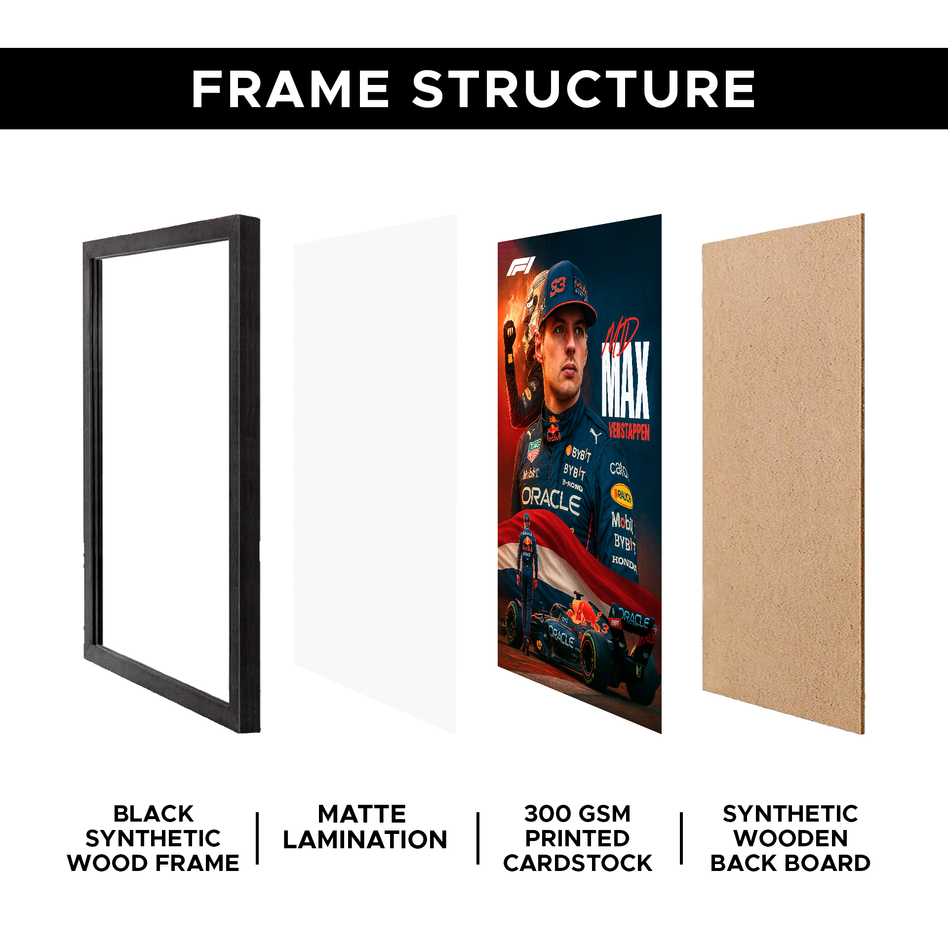 F1 Max Verstappen A4 Framed Poster